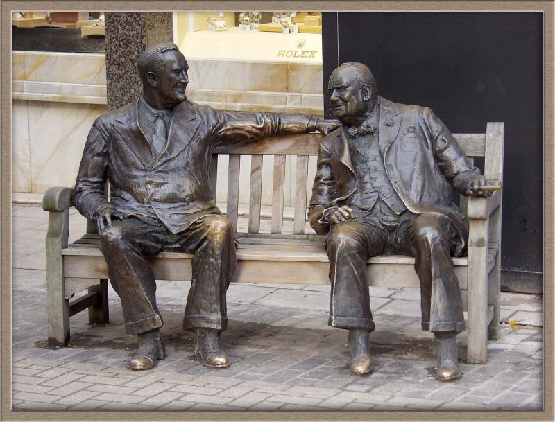 Roosevelt and Churchill are sitting.