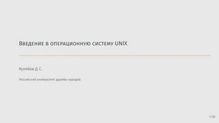 Введение в операционную систему UNIX2020-06-10 · 1 мин. для прочтения 3x4 16x9 Print Handouts Проект Слайды ВидеоДата2020-06-10 00:00Курс «Операционные системы»Лекция 1. Введение в операционную систему UNIXВидео презентацииОбновлено 2020-06-10 AuthorsДмитрий Сергеевич КулябовПрофессор кафедры теории вероятностей и кибербезопасностиМои научные интересы включают физику, администрирование Unix и сетей. Structural approach to the deep learning method 2019-10-03 →